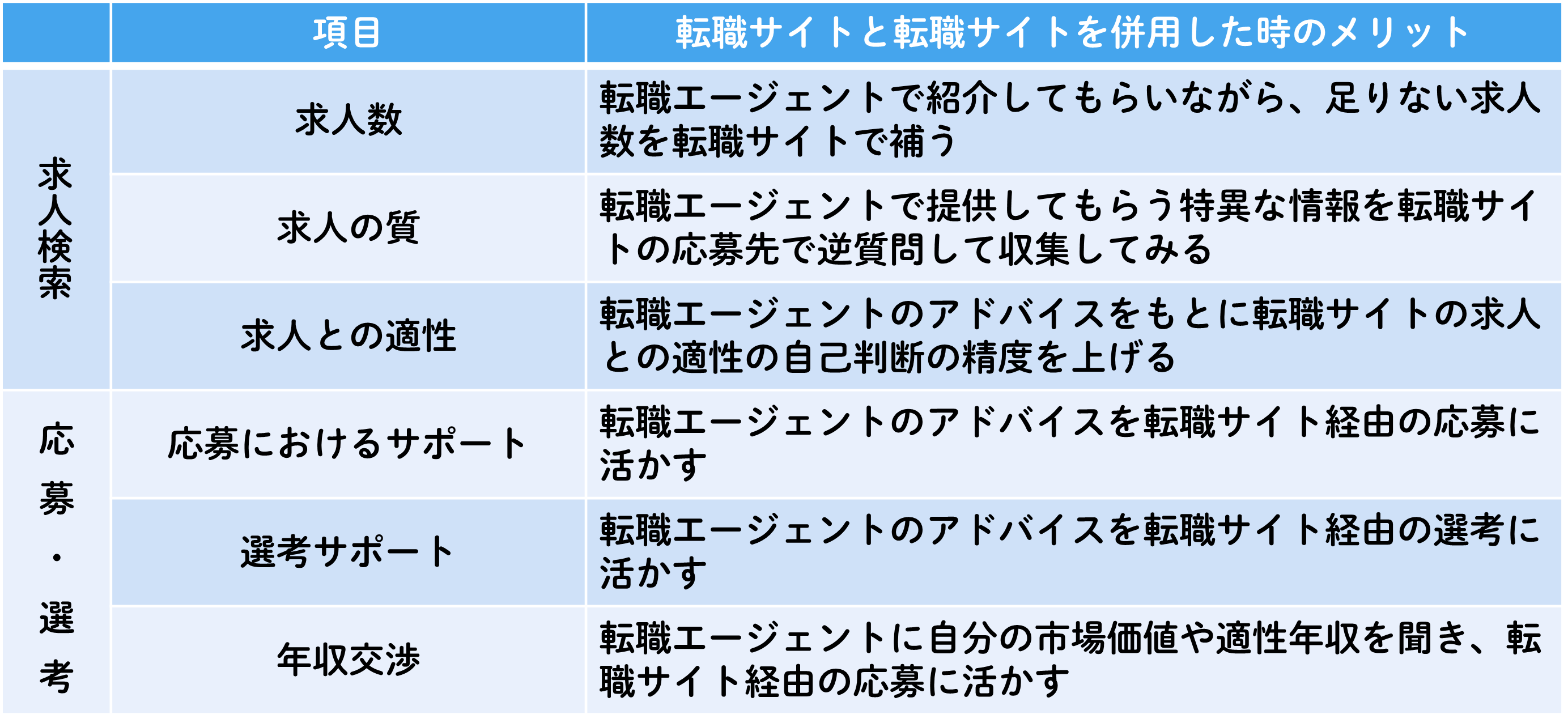 それぞれに得られるメリットは違いますが、併用することで転職活動の質が高まることは間違いありません。