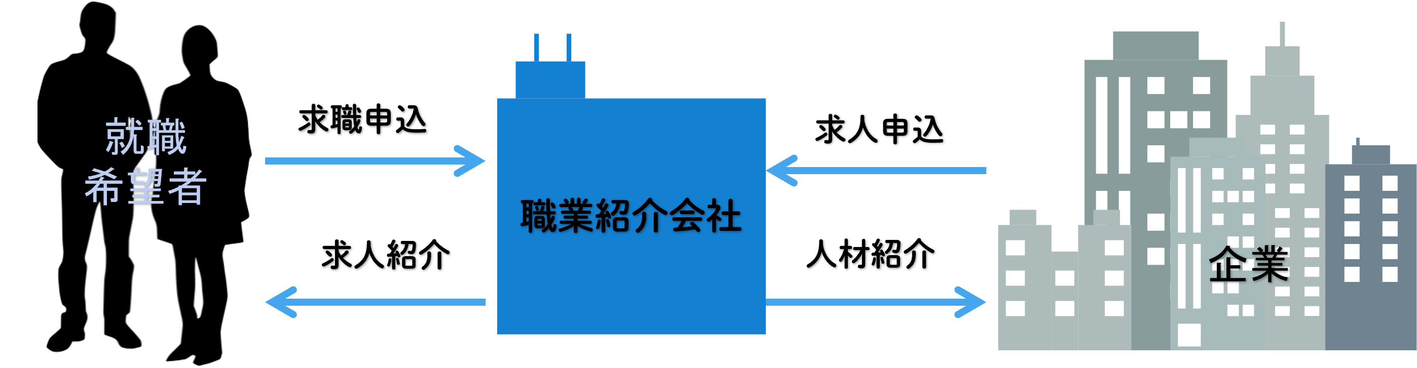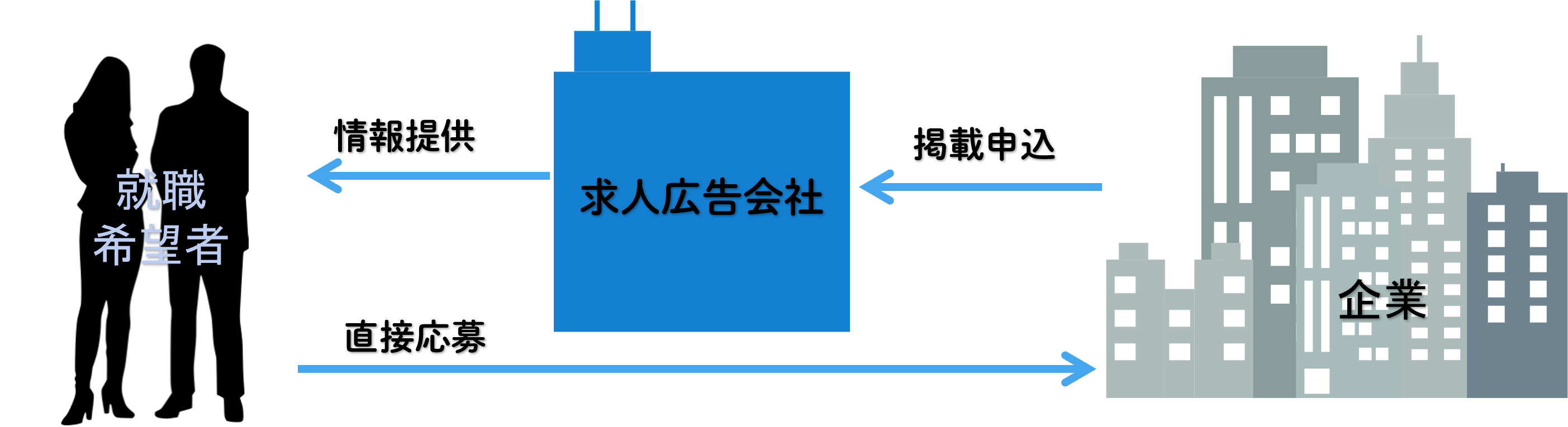 具体的には、応募から採用に至るまでのフローと事業者(サービス提供者)との関わり方が違います。