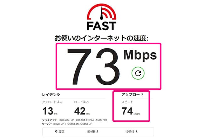 インターネット速度はNetflixが提供する「Fast.com」やUSENが提供する「USEN GATE 02」などのサイト確認できます。